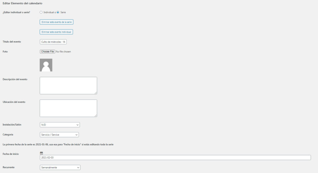 Para eliminar toda la serie de eventos, haz clic en Eliminar esta serie de eventos.
