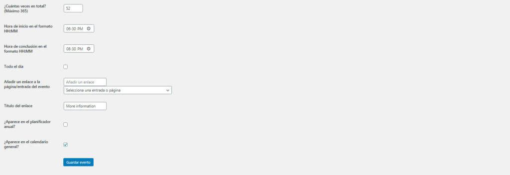 Y finalmente, no olvides hacer clic en Guardar evento.