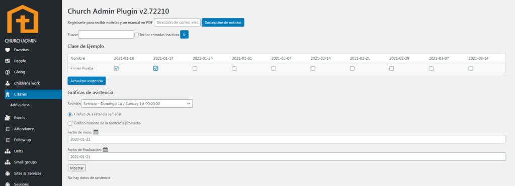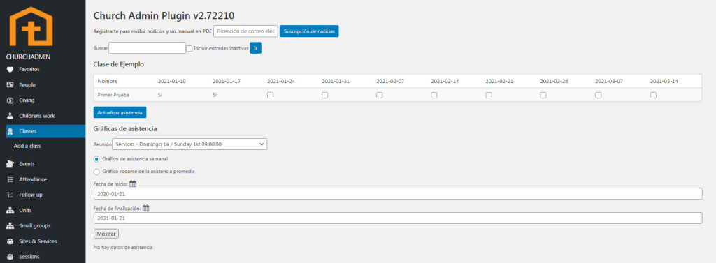 Para ingresar asistencia a clases, debes primero asegurarte de que al crear una clase, o editarla, ingresas las personas que asistirán a la clase. Para aprender más acerca de crear clases, ve a Clases.