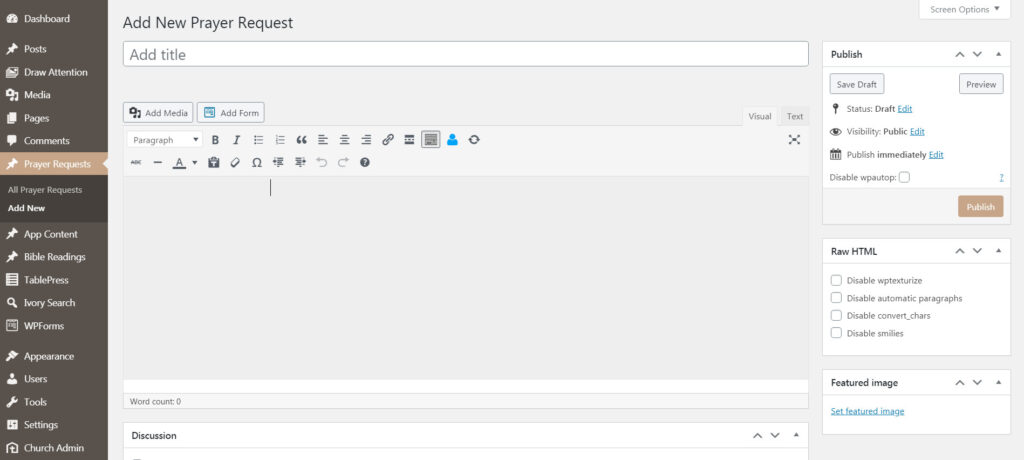 Agregando una petición de oración es muy similar a agregar cualquier otro tipo de entrada, pero no aparece en Entradas.
