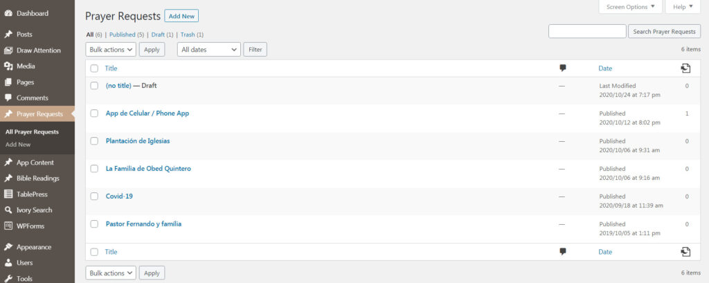 El tipo de entrada personalizada de petición de oración fue presentado junto con la aplicación móvil del plugin de Church Admin.