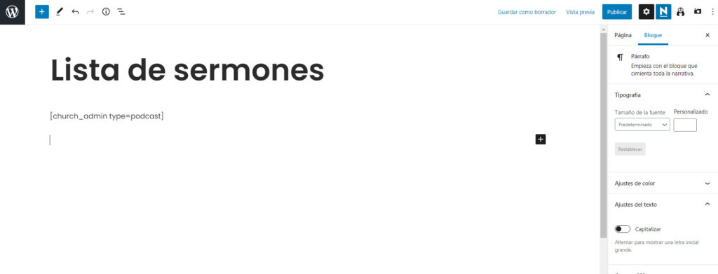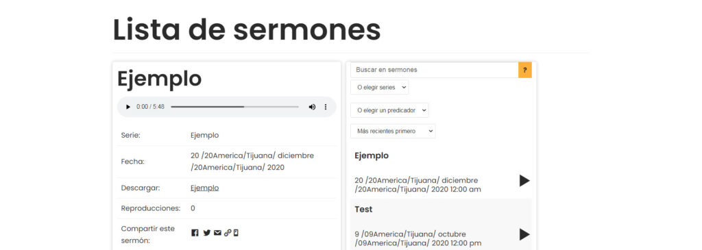 Si creas una nueva página y colocas solo este shortcode en la página, automáticamente mostrará una lista de todos los sermones que has subido.
