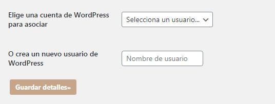 Al pie de la página, puedes o añadir un usuario de WordPress existente a su entrada o crear un usuario de WordPress nuevo para su entrada.