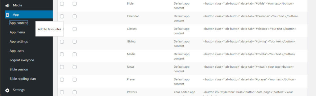 One of the great features of Church Admin is the ability to have favorite sub-menu items. You can now add sub-menu items to favorites for easier access.