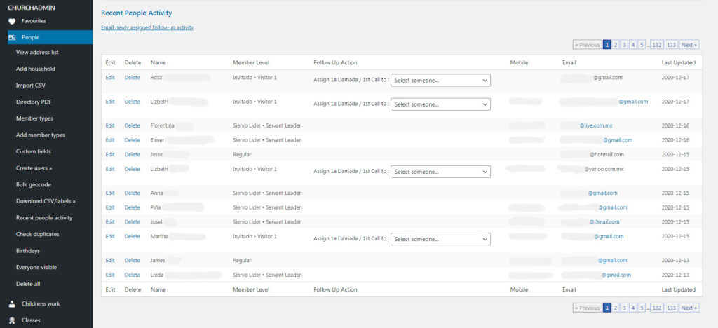 Many churches do some sort of follow-up for first time visitors, second time visitors or the like, from sending a text message to visiting them at their homes. Organize follow-up actions with Church Admin.