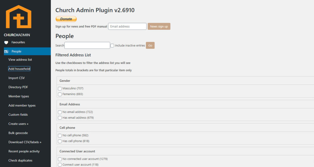 For the Church Admin plugin, a household is defined as family unit based at a single address. But we would recommend you create a new household, even at the same address, when a teenager becomes an adult so that they have more control over their data. Every household or person you enter into Church Admin will appear on the address list, even if you have not added an address to their entry.