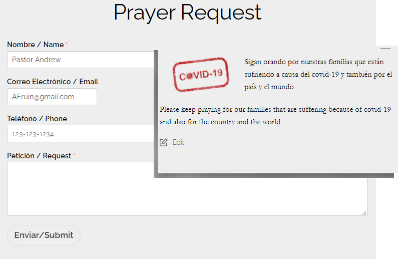 Church Members can request prayer and those requests can be put through a moderator and then, either shared publicly or with a Prayer Chain.